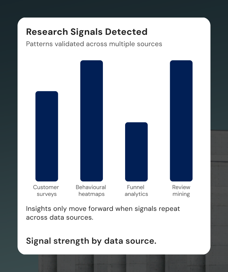 We mine every data source, reviews, surveys, support tickets, ad comments, scrollmaps, and heatmaps-to learn why people buy (or don’t).